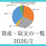 月末恒例、2026年2月末時点での資産一覧の把握と今月の家計簿チェックを行いました