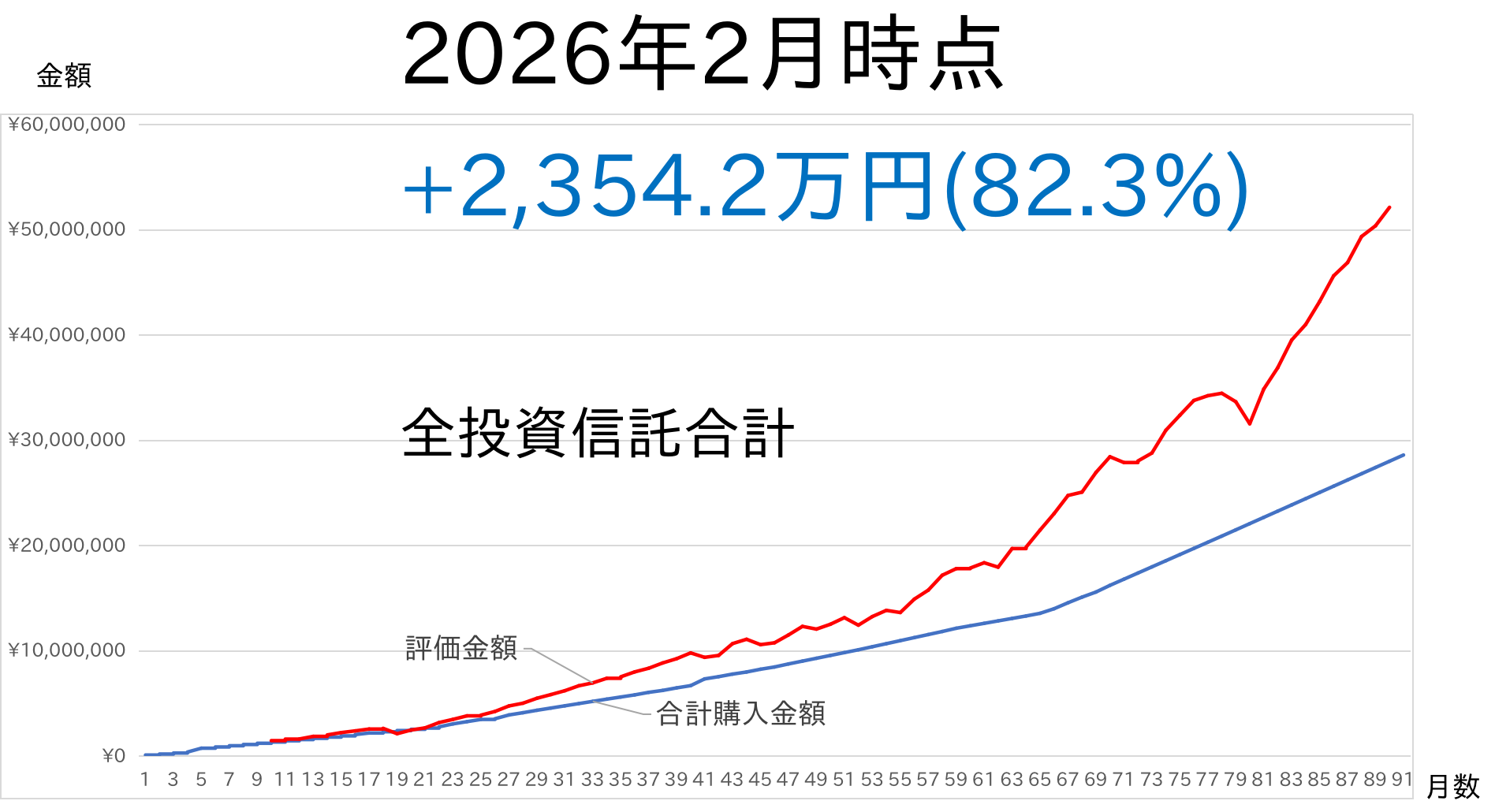 2026年2月 インデックス投資まとめ 合計額5,215.2万円 (+82.3%)